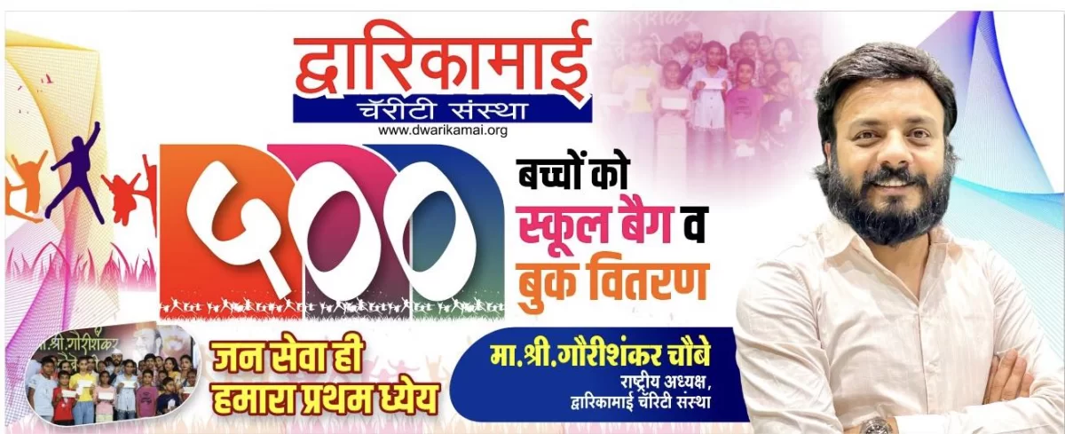 द्वारिकामाई चैरिटी संस्था द्वारा बच्चों को उपहार स्वरूप शैक्षणिक सामग्री वितरित करने का सौभाग्य प्राप्त हुआ। यह पहल केवल किताबें और स्टेशनरी देने तक सीमित नहीं है, बल्कि यह बच्चों के उज्ज्वल भविष्य में विश्वास प्रकट करने, उन्हें प्रेरित करने और शिक्षा के महत्व को सशक्त रूप से स्थापित करने का एक सार्थक प्रयास है।संस्था का उद्देश्य समाज के हर बच्चे तक शिक्षा, अवसर और आत्मनिर्भरता का संदेश पहुँचाना है, ताकि वे आने वाले कल के सशक्त नागरिक बन सकें।द्वारिकामाई चैरिटी संस्था सदैव समाज में सेवा, संस्कार और शिक्षा के प्रसार के लिए समर्पित रही है।"शिक्षा ही सशक्त राष्ट्र की नींव है"