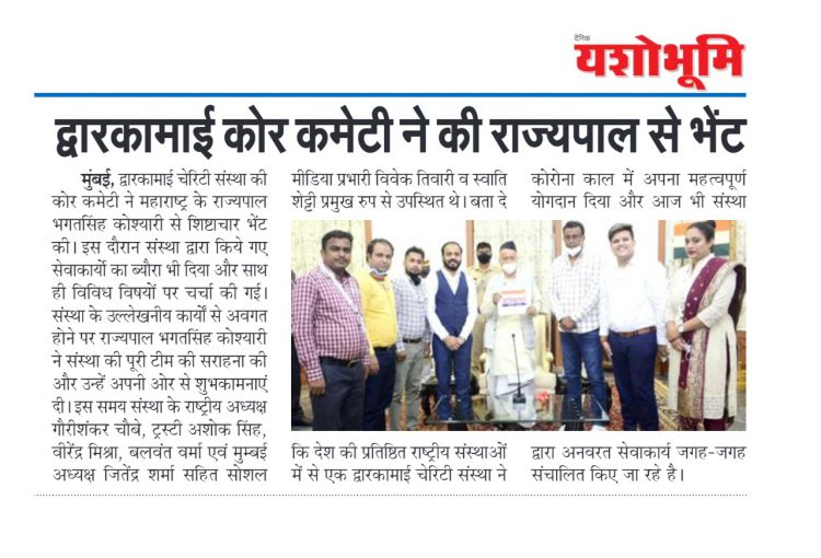 द्वारिकामाई की कोर कमेटी ने गरीबों और जरूरतमंदों के मुद्दों पर राज्यपाल से की मुलाकात