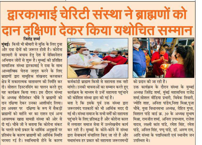 द्वारिकामाई चैरिटी संस्था ने ब्राह्मणों का दान देकर किया आदर-सम्मान, सभी के लिए मांगा आशीर्वाद
