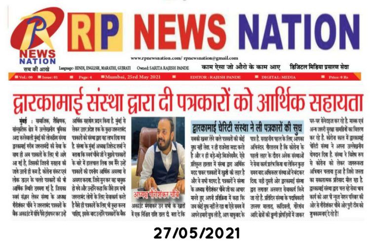 द्वारिकामाई चैरिटी संस्था का सराहनीय कदम : पत्रकारों को वित्तीय सहायता