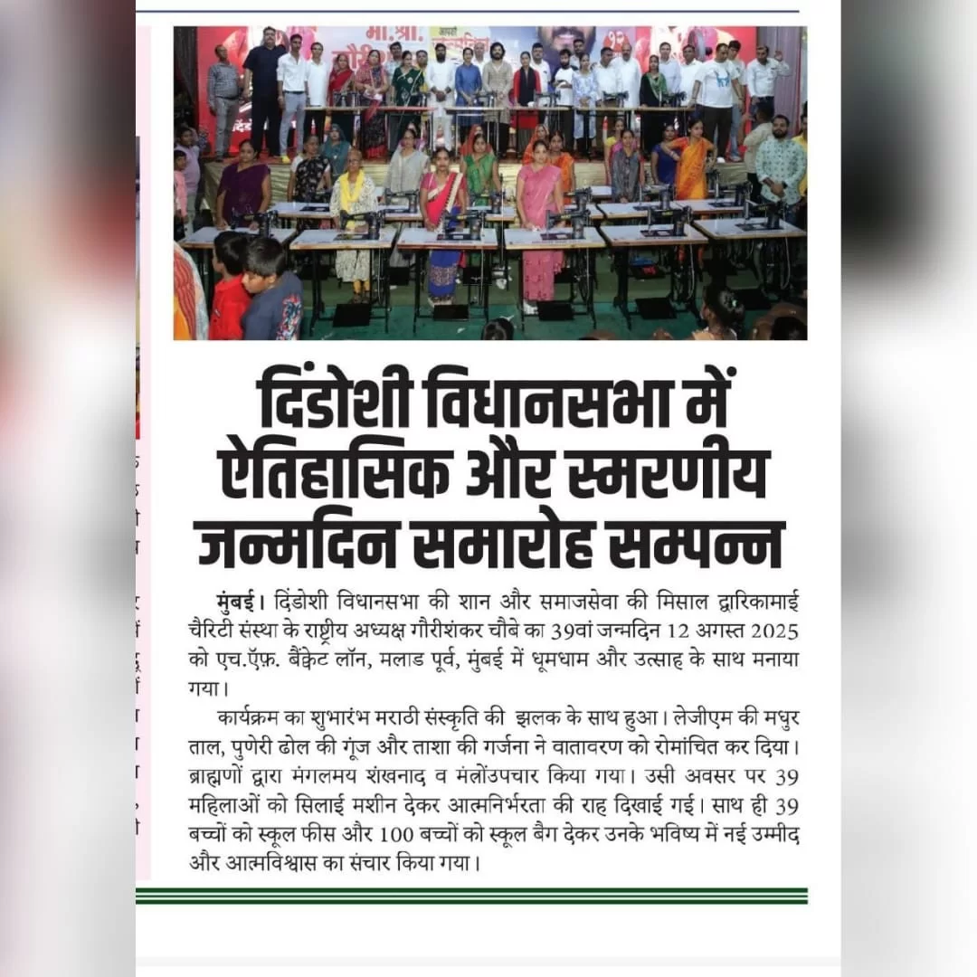 दिंडोशी विधानसभा में गौरीशंकर चौबे सर का भव्य जन्मदिन उत्सव : ज़रूरतमंदों की मदद और बच्चों की पढ़ाई में सहयोग