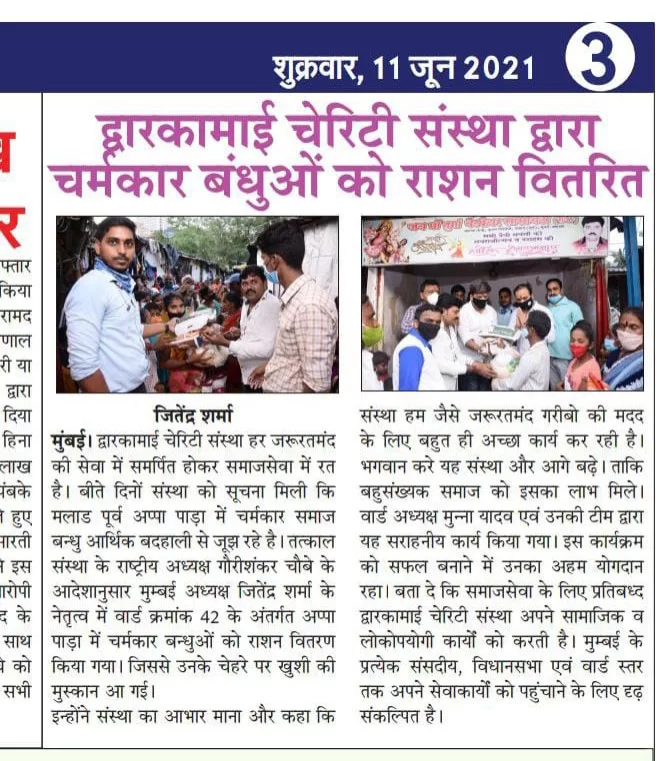 1. चर्मकार बंधुओं के लिए द्वारिकामाई चैरिटी संस्था का सहयोग : वित्तीय व राशन मदद